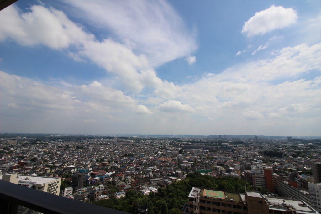 一方 都心部からすこしはなれたタワーマンションでは リビングダイニング バルコニー